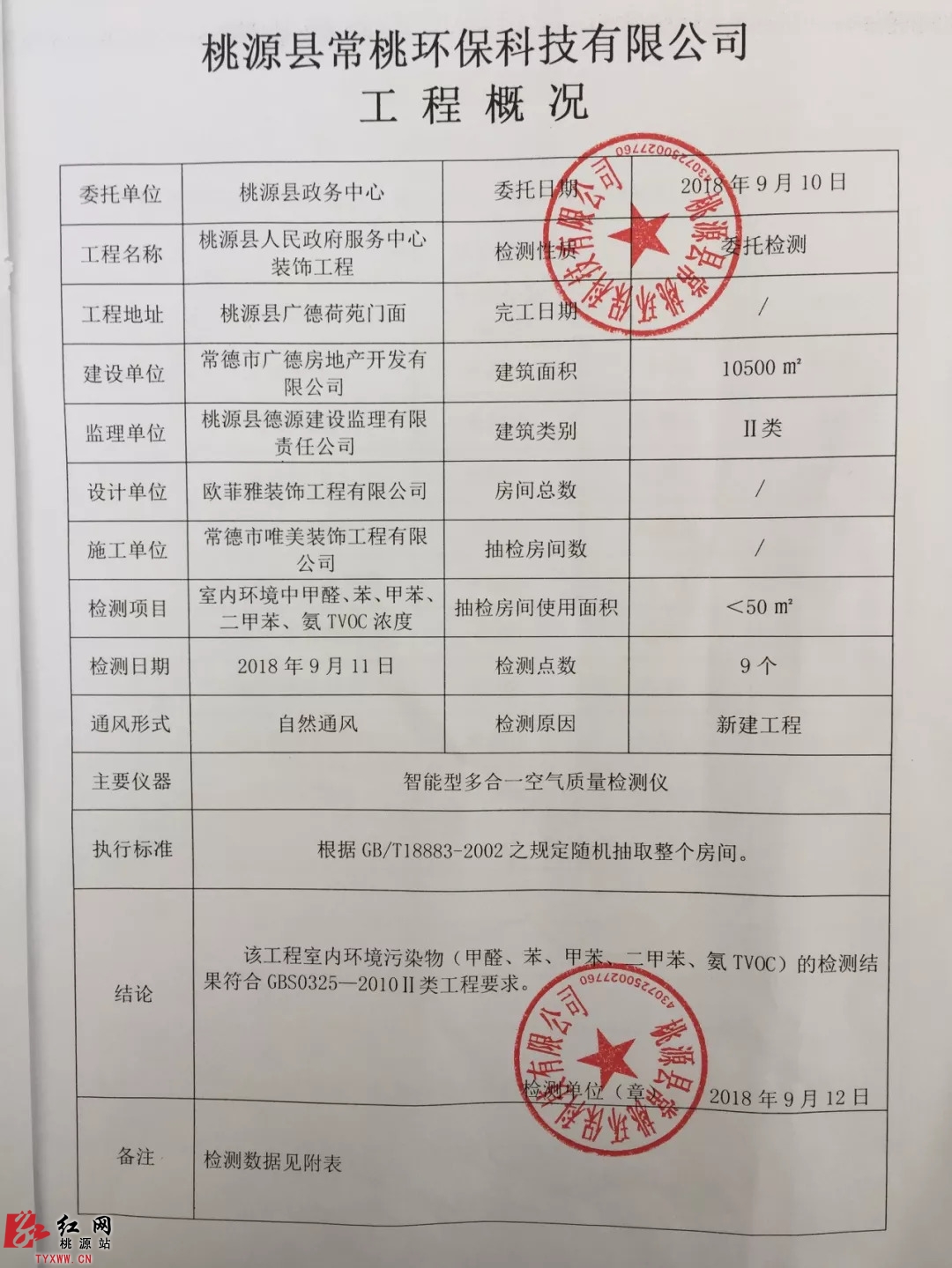 附:桃源县政务中心室内环境检测