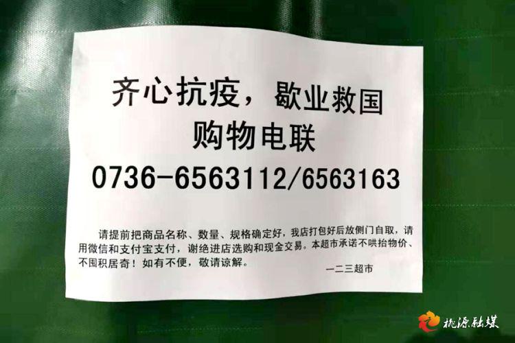 “齐心抗疫、歇业救国、购物电联”桃源县双溪口镇一字山村共产党员、退伍军人李科在他的超市门前,贴出这样一张告示。