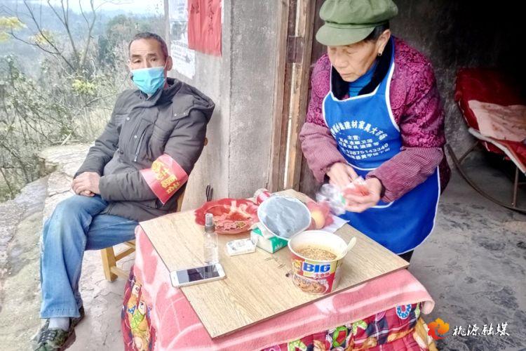 三阳港镇党建联络员李乐彬接过同事手中的登记册,开始她今天的第一班岗。陈明英老妈妈早已经把大门打开,搬来热乎的炭火,拎着热水瓶等着她:“娃儿,莫冻狠打,快来烤烤火,吃早饭没有啊?”76岁的陈明英老人是三阳港镇跑马岭村的建档立卡贫困户,独自居住。她们前的这条公路是出入跑马岭与黄甲铺的一个主要路口,从村里在这里设置劝返卡点起,她便开始忙碌起来,每天早早开门,主动当起了“后勤员”。