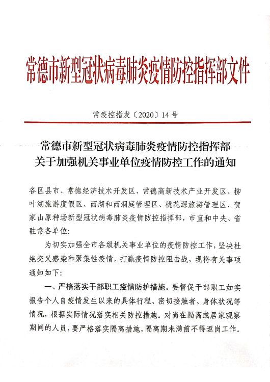 各区县市、常德经济技术开发区、常德高新技术产业开发区、柳叶湖旅游度假区、西湖和西洞庭管理区、桃花源旅游管理区、贺家山原种场新型冠状病毒肺炎疫情防控指挥部,市直和中央、省驻常各单位: