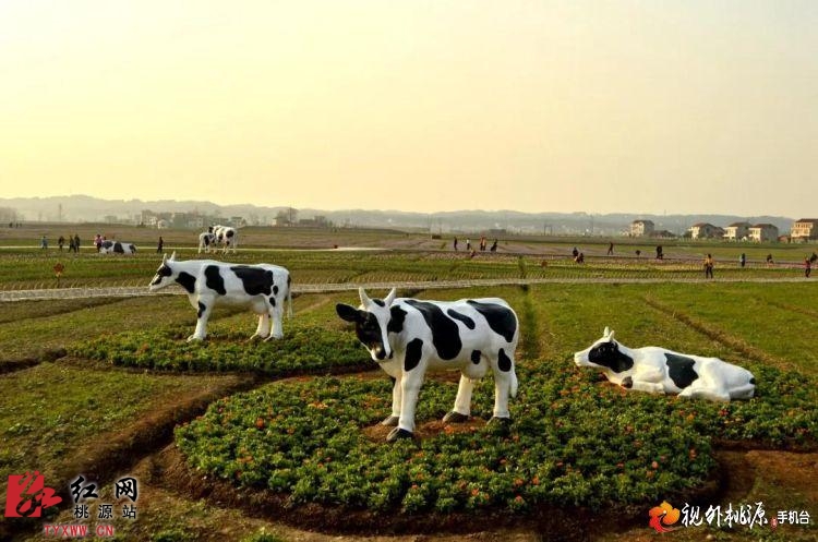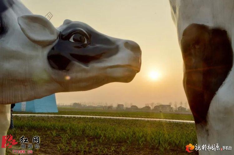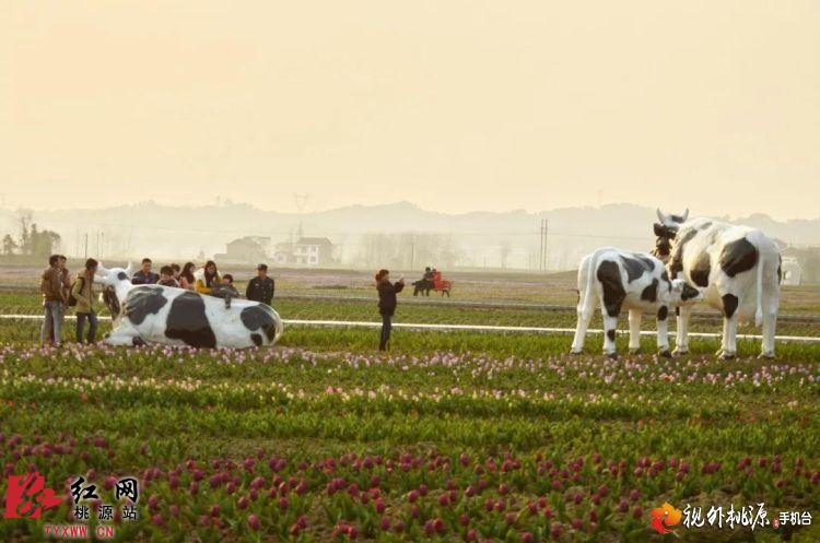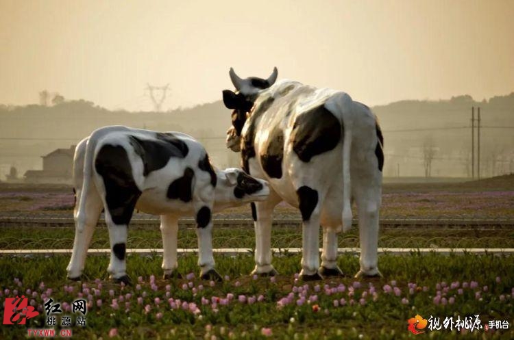 2015年3月8日,枫林花海里,惟妙惟肖、十分逼真的奶牛雕塑群显得萌萌哒。