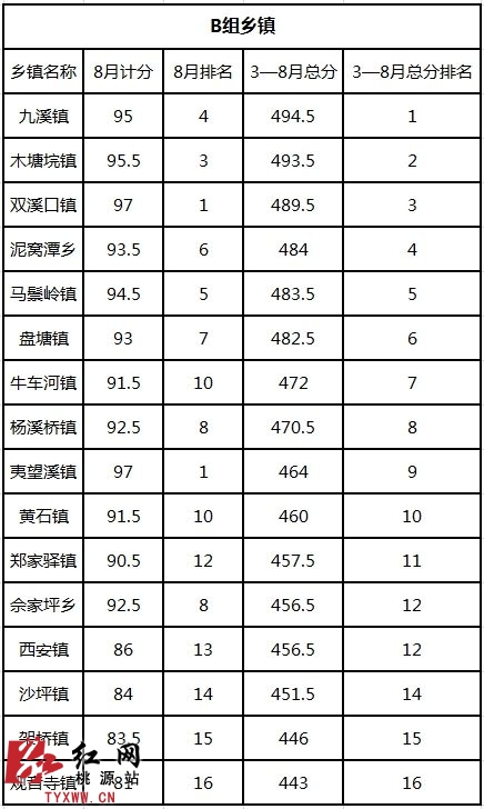自《桃源县小城镇建设管理三年行动实施方案》(以下简称方案)下发以来,桃源县委县政府高度重视。县委书记周代惠在调度乡镇集镇清洁行动工作时要求,要切实解决好群众关心的这些“关键小事”。全县上下掀起了一场乡镇集镇清洁大会战,取得了很好成效。为督促各乡镇进一步做好乡镇集镇清洁行动,现将8月和3——8月份暗访考核结果公示如下: