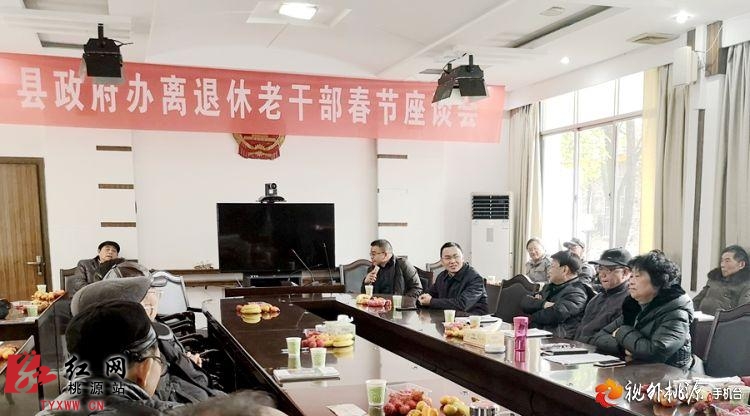 1月24日,桃源县县长庞波与县政府办离退休老干部们欢聚一堂,喜迎新春佳节,共谋发展大计。