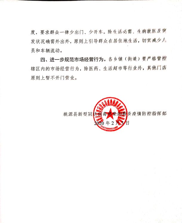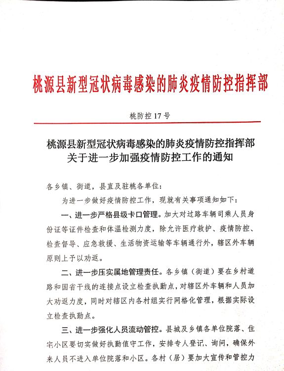 桃源县疫情防控指挥部关于进一步加强疫情防控工作的通知