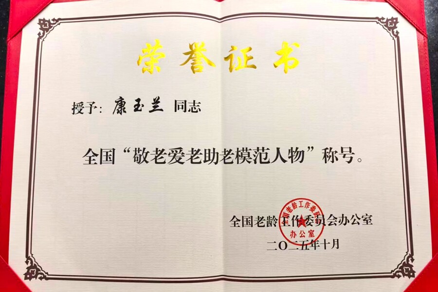 “康玉兰同志,恭喜您获评全国‘敬老爱老助老模范人物’称号,我们特地登门为您颁奖,您十七年如一日照料老人的事迹,全镇人民都该向您学习!”近日,西安镇社会事务综合服务中心与民政社工站的工作人员带着荣誉证书和慰问物资,走进康玉兰家中,将这份饱含敬意的表彰送到她手中。