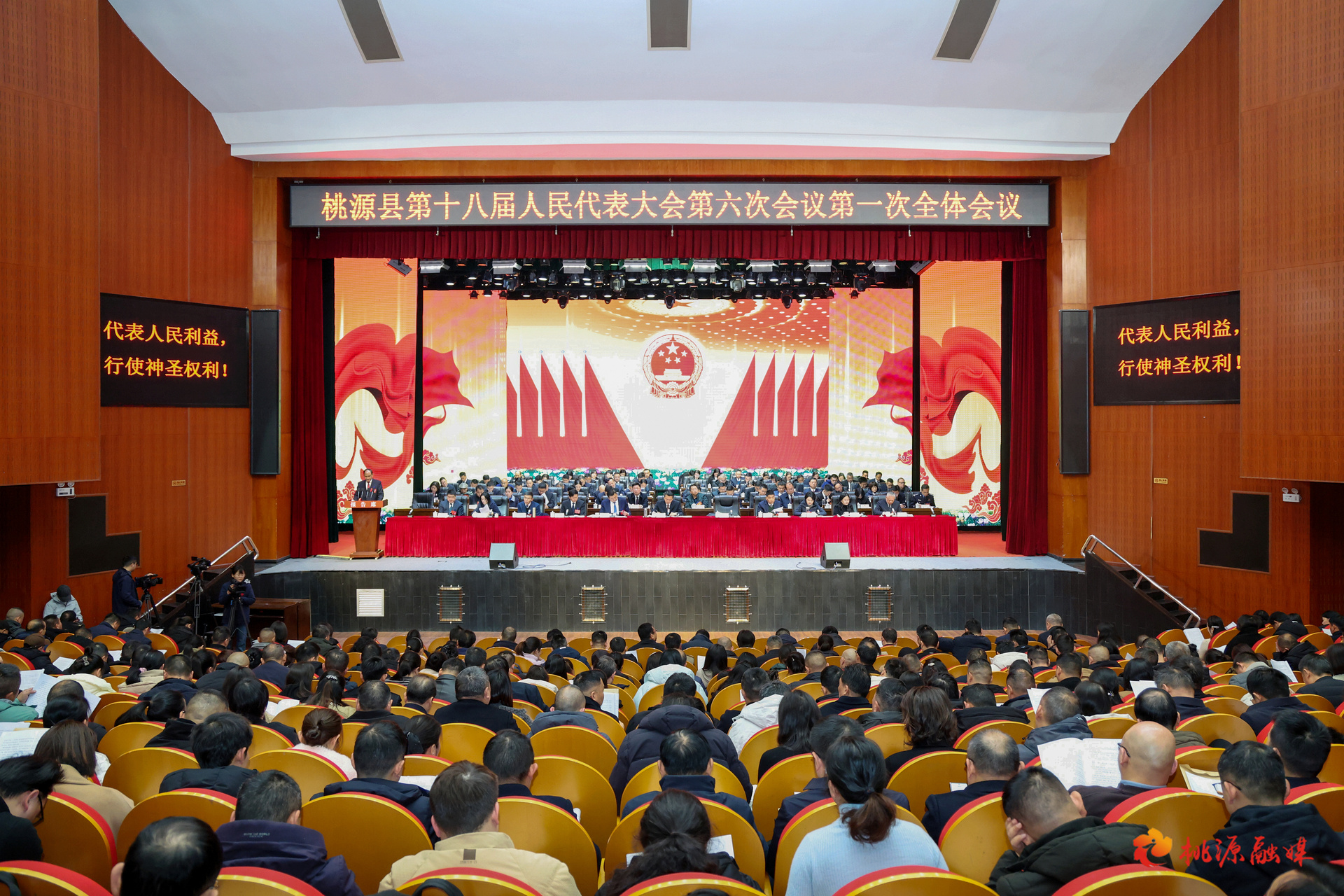 1月21日上午,桃源县第十八届人民代表大会第六次会议在县文化体育中心隆重开幕。来自全县各行各业的人大代表,肩负全县人民的期盼和重托,满怀豪情齐聚一堂,依法履行宪法和法律赋予的神圣职责,共商桃源发展大计,共绘桃源美好明天。市委常委、县委书记黄伟雄出席大会,县委副书记、县长马吉云作政府工作报告。县人大常委会党组书记、主任提名人选杨戊主持会议。