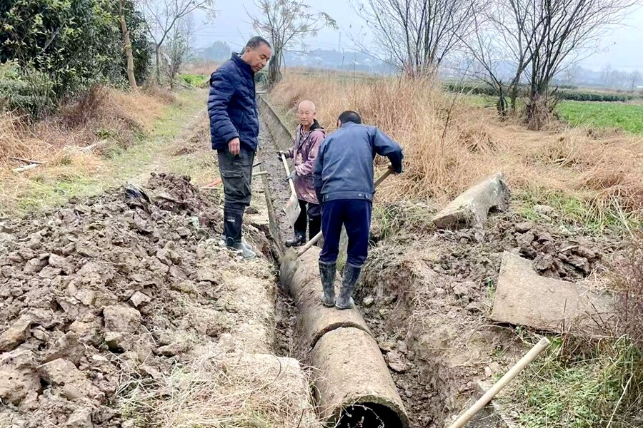 春耕备耕,水利先行。与育秧大棚里的忙碌相呼应,茶庵铺镇的田间地头同样一派热火朝天的景象。村民们抢抓农时,手持锄头、铁锹等工具,对田间沟渠开展全面清淤疏浚作业。大家分工协作,清理淤泥、铲除杂草、修整渠堤,原本淤塞的沟渠逐渐恢复畅通。一条条“焕新”的灌溉沟渠,如同农田的“毛细血管”,为后续早稻插秧、田间灌溉提供了坚实的水利支撑,让春耕生产的“生命线”始终畅通。