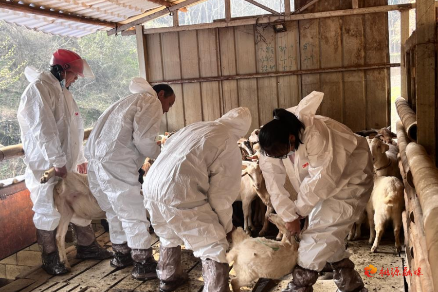 防疫现场,工作人员身着防护服,严格规范操作,为山羊等畜禽精准接种疫苗,同步做好信息登记与养殖指导。针对养殖大户与散养户,该镇实行“先大户后散户、整村推进”策略,分片包干、逐户排查,确保“镇不漏村、村不漏户、户不漏畜、畜不漏针”,实现防疫全覆盖。