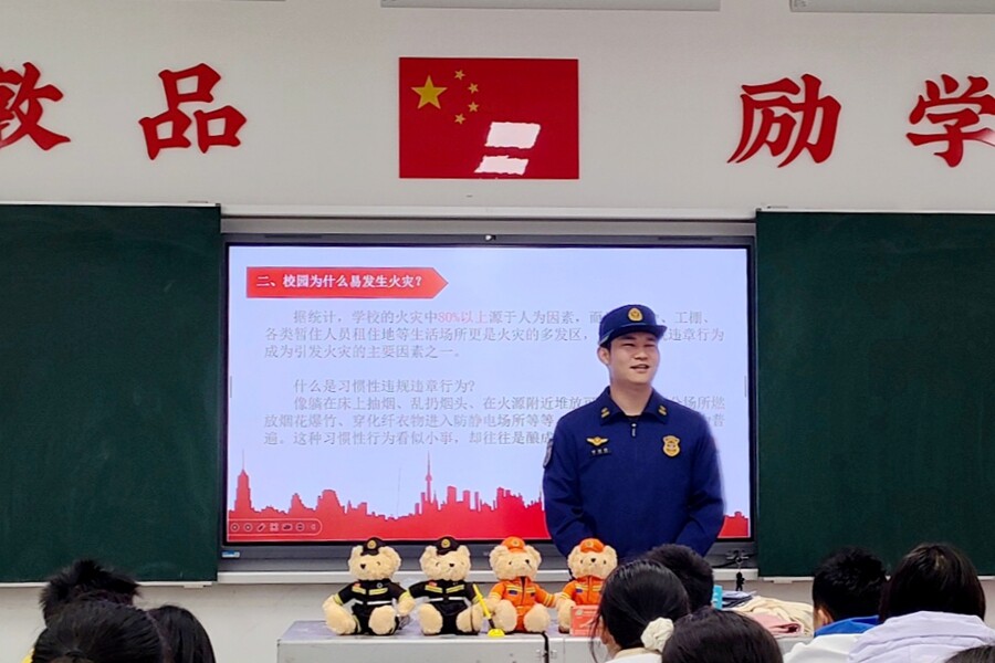此次宣传教育活动紧扣校园人员密集的特点,从校园火灾防控实际出发,以谈话形式自然引入主题。消防救援人员结合近5年全国学生宿舍火灾2314起的真实数据,向师生们强调了校园消防安全的重要性,指出学校作为未成年人聚集的特殊场所,消防安全直接关乎师生生命安全、校园教学秩序和千家万户的切身利益。同时,深入剖析校园火灾80% 以上源于人为因素的核心问题,详细列举躺在床上抽烟、乱扔烟头、火源附近堆放可燃物等习惯性违规违章行为,让师生们深刻认识到日常点滴中的火灾隐患,树立“防微杜渐” 的防火意识。