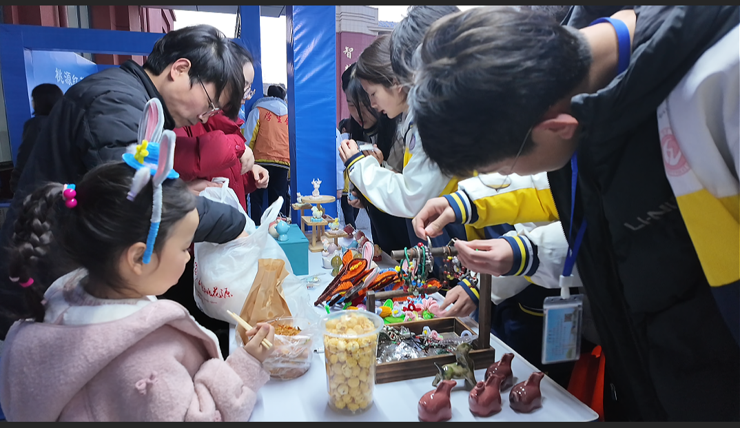 傍晚的体育馆热闹非凡,桃源队和安乡队激战正酣,呐喊声、加油声此起彼伏。赛场外的星光市集更是一派热闹景象,成为赛事之外的另一道风景线。各个农产品摊位前人头攒动,摊主们热情地招呼着往来的球迷和市民。摊位上,桃源红茶、本地大米整齐码放,色泽鲜亮;一旁的擂茶和“辣妹子”展位前,多个球迷正排队品尝。不远处的非遗摊位上,精美的刺绣、木雕作品静静陈列,不时有人拿起作品端详、询价购买。在整个市集里,蒿子粑粑的摊位前人气最旺,腾腾热气伴着阵阵香气飘散,不少顾客正在排队等候,摊主手脚麻利地将煎得金黄的粑粑装盒递出。趁着赛事的热度,摊位主人们忙得不亦乐乎,谈及此次赛事带来的变化,大家也难掩喜悦。