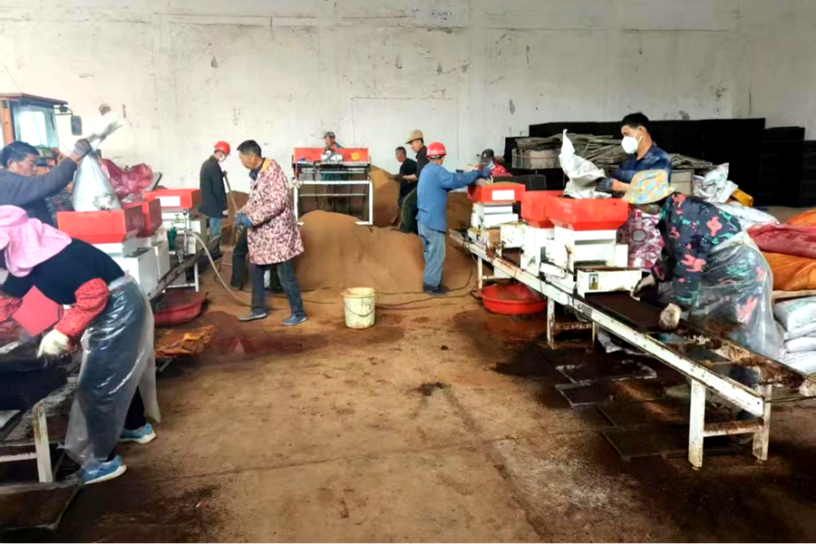育秧生产线上工人们正加紧工作