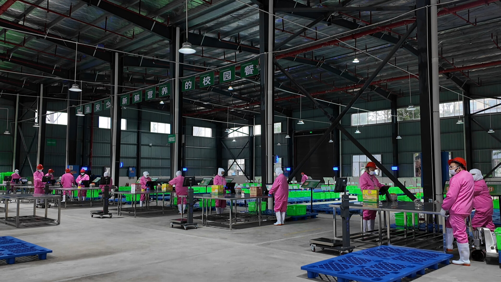 集采集配是针对校园食堂大宗食材构建的全链条规范化供应模式,通过统一采购、统一检测、统一分拣、统一配送,实现食材从源头到校园的全程可控。在标准仓储分拣中心内,工人们身着卫生服、佩戴口罩和手套,在操作台上紧张有序地分拣蔬菜;另一侧的食材检测及质控中心里,技术人员正对食材样本进行农残、兽残等指标的快速检测。分拣完成的新鲜食材,将随冷链车于每日凌晨发车,沿着配送线路准时送达各所学校。此次桃源县集采集配通过公开招投标让专业企业负责运营,搭建起了标准化仓储、专业化检测、规范化配送的完整体系。