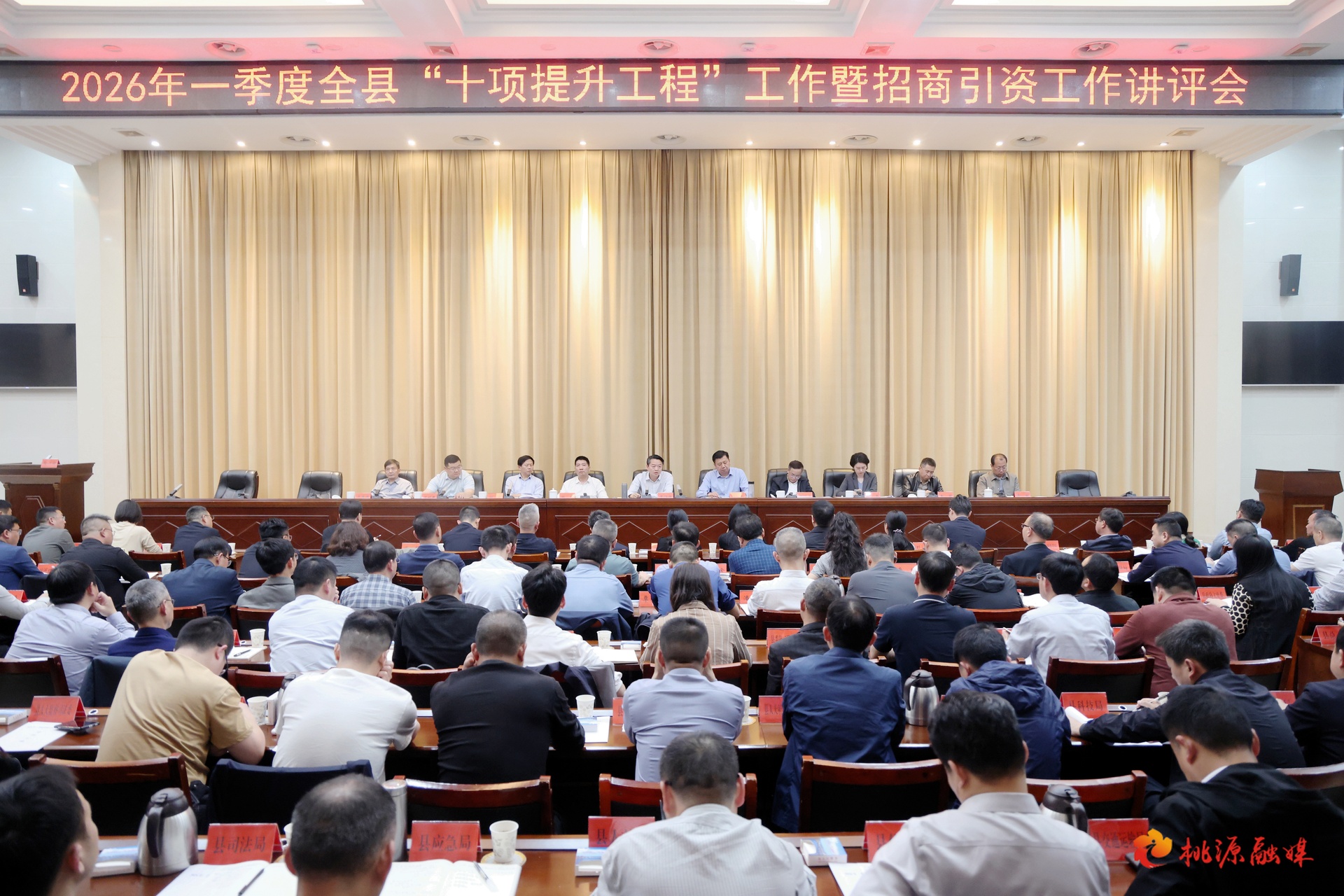 4月10日下午,桃源县召开2026年第一季度全县“十项提升工程”工作暨招商引资工作讲评会。市委常委、县委书记黄伟雄出席并讲话,强调保持定力、久久为功,高举发展第一要务、守牢安全第一底线,加快推进“十项提升工程”、努力建设“五个现代强县”,奋力实现“十五五”开门红、开门稳。