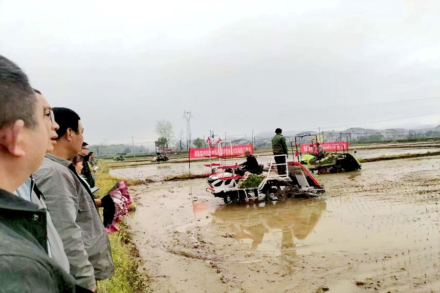 演示现场,澄溪桥村的稻田里一片繁忙景象,多台插秧机、抛秧机同步轰鸣启动,在田间来回穿梭,将田野化作了农业科技的展示舞台。操作人员熟练操控设备,轻轻一点操作按钮,一盘盘嫩绿的秧苗便从秧盘上有序滑落,被精准插入泥土,株距均匀、深浅适宜,整个作业过程高效有序、规范标准。
