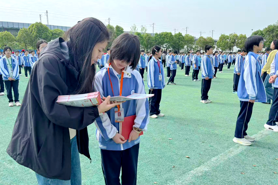 讲座结束后,工作人员向在场学生发放了预防未成年人犯罪、未成年人权益保护、禁毒宣传等主题宣传册,共计1000余份。宣传册以图文并茂的形式,清晰呈现法律知识、禁毒知识和安全防护技巧,让法治理念入脑入心。