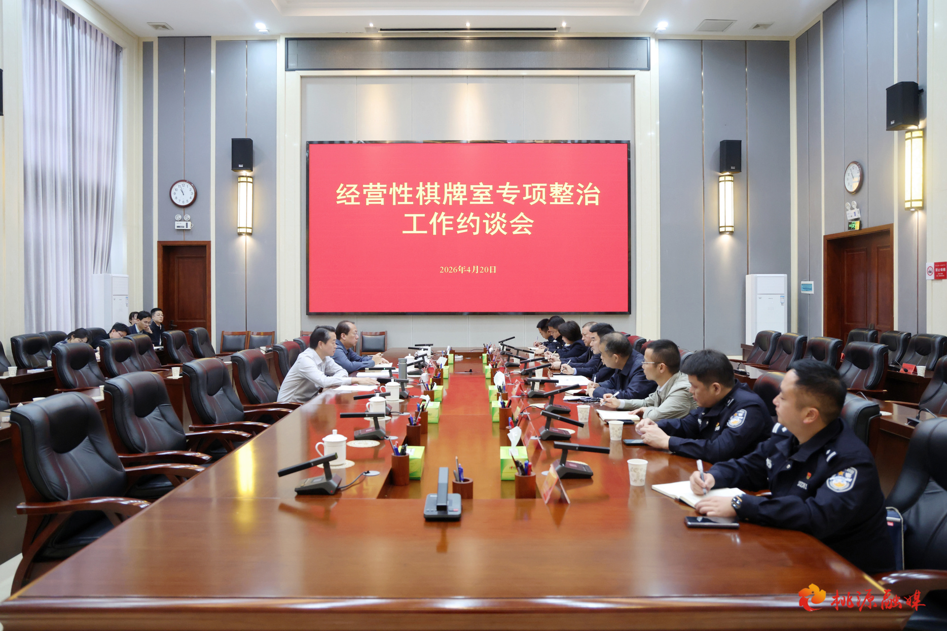 4月20日上午,市委常委、县委书记黄伟雄主持召开经营性棋牌室专项整治工作约谈会。他强调,要提高政治站位,坚持问题导向,以铁的决心、铁的手腕、铁的纪律,重拳整治突出问题,坚决遏制歪风陋习,持续净化社风民风,助力桃源经济社会高质量发展。