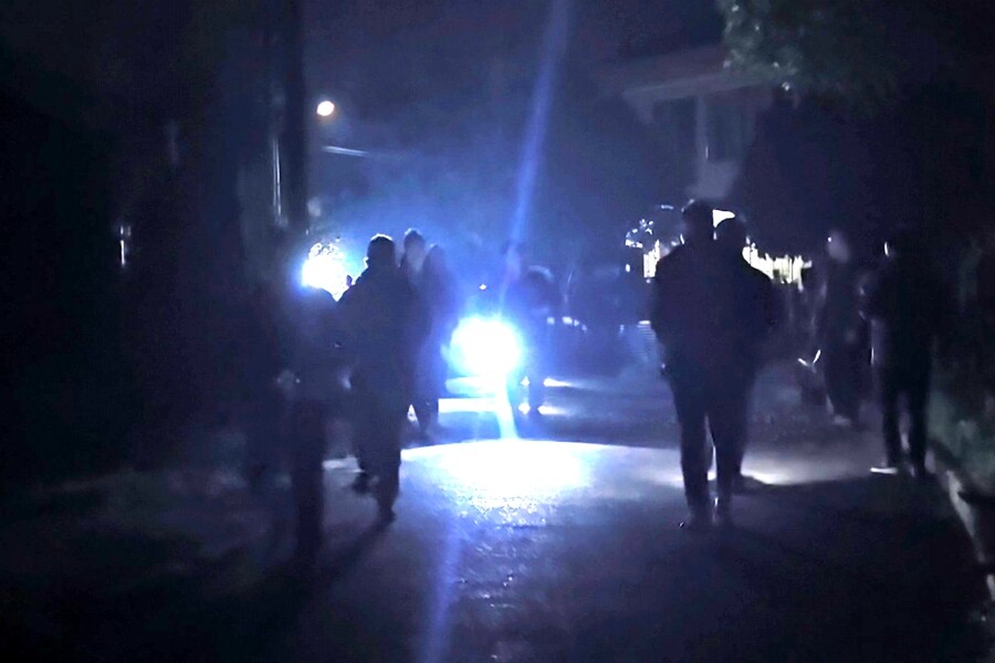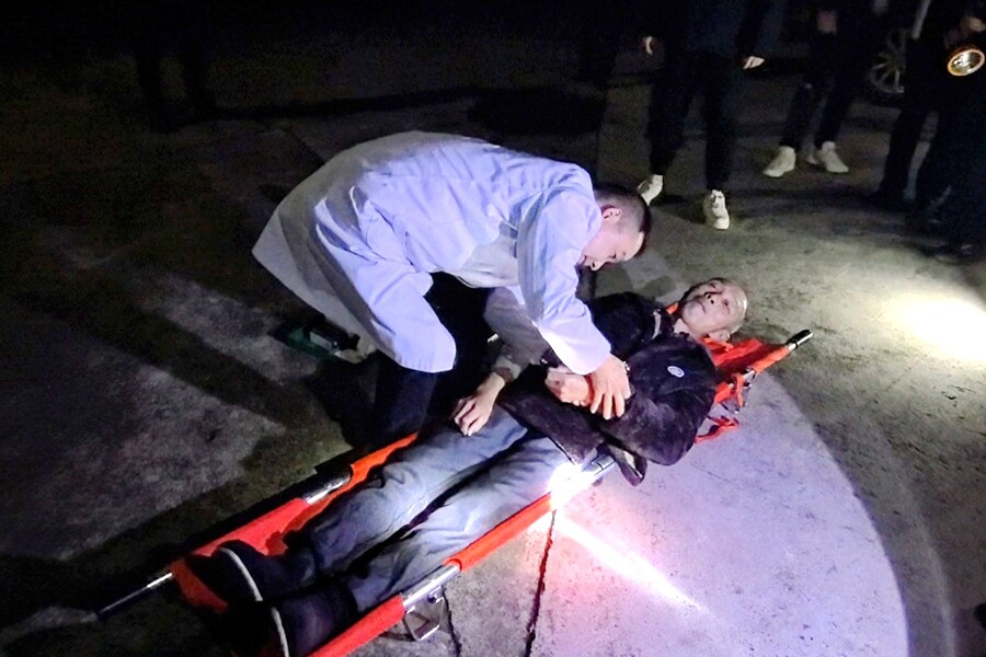 接到指令后,两个群众转移小组迅速分头行动,奔向各自包保的农户家中。他们借助手电筒照明,逐户敲门,引导搀扶“受困群众”沿预定路线快速撤离。因视线不佳、道路湿滑,小组成员格外谨慎,一边提醒群众注意脚下安全,一边加快转移节奏。