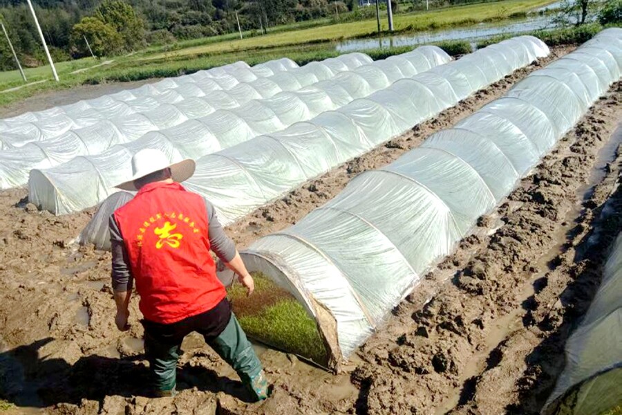 清明假期首日,气温骤升,高达25℃,突如其来的高温天气给早稻育秧工作带来严峻考验。夷望溪镇种田大户王大爷看着自家连片的育秧棚心急如焚,秧棚内温度持续走高,若不及时揭膜通风,秧苗极易被高温灼伤,直接影响全年早稻生产。但由于正值清明祭祖,乡里乡亲皆有安排,临时难以请到劳动力,揭膜工作陷入困境。
