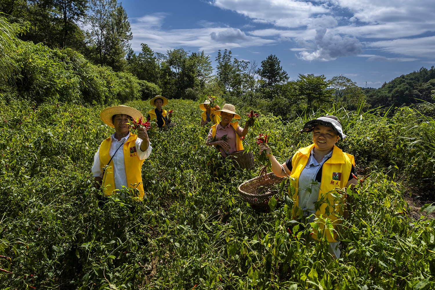 近日,牛车河镇马路坪村90后妇联主席付宏艳在绿色的田野中带领大家采摘辣椒,火红的辣椒像一朵朵小太阳,散发出诱人的香气。一边采摘一边介绍着朝天椒,因长相朝天,叫朝天椒,它基本上每个技杆上长满了七棵辣椒,也叫七星辣椒。