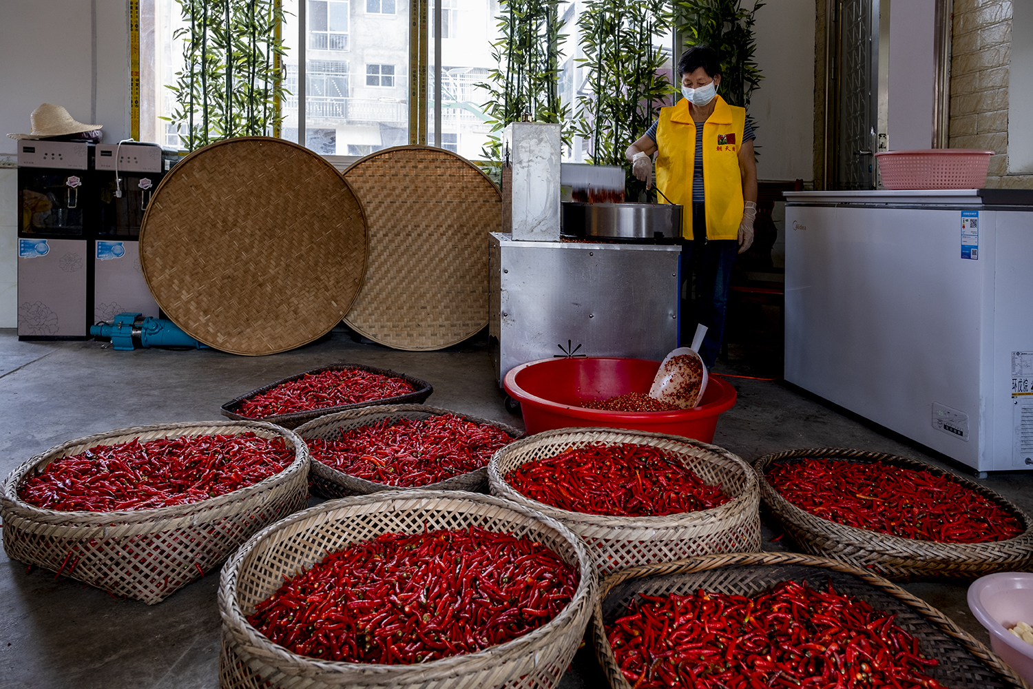 牛车河镇马路坪村85后村支书王权勇是换届新当选的,年富力强。没当村支书前在外当老板,有头脑,懂经营,会管理。在乡村振兴局住村工作组的指导下,积极想办法,利用本村不适宜种水稻的土地及丘岗地和自然气候条件优势,大力推荐农户种植具有当地特色的农产品朝天椒(七星椒)。带领村民致富,今年的自然气候较好,农户种植的辣椒大面积的收成都往年要好许多,有了好的收成,这么好的农产品山高路远怎样卖出去,这件事也是乡村振兴局住村工作组干部和村支书头疼的事,这个时候,会经营、懂管理的王支书和他带领的一班人,集体决定村里先建一个剁辣椒的生产作坊,把农户种植的辣椒先收购,解决燃眉之急,让农户放心,吃下定心丸,往后村里再慢慢扩大办厂,往“一村一品”的路上发展。
