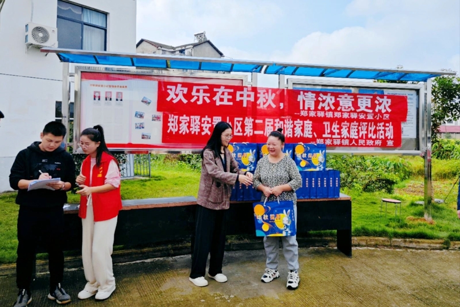 郑家驿镇乡村振兴办工作人员给安置小区群众送上月饼和中秋祝福
