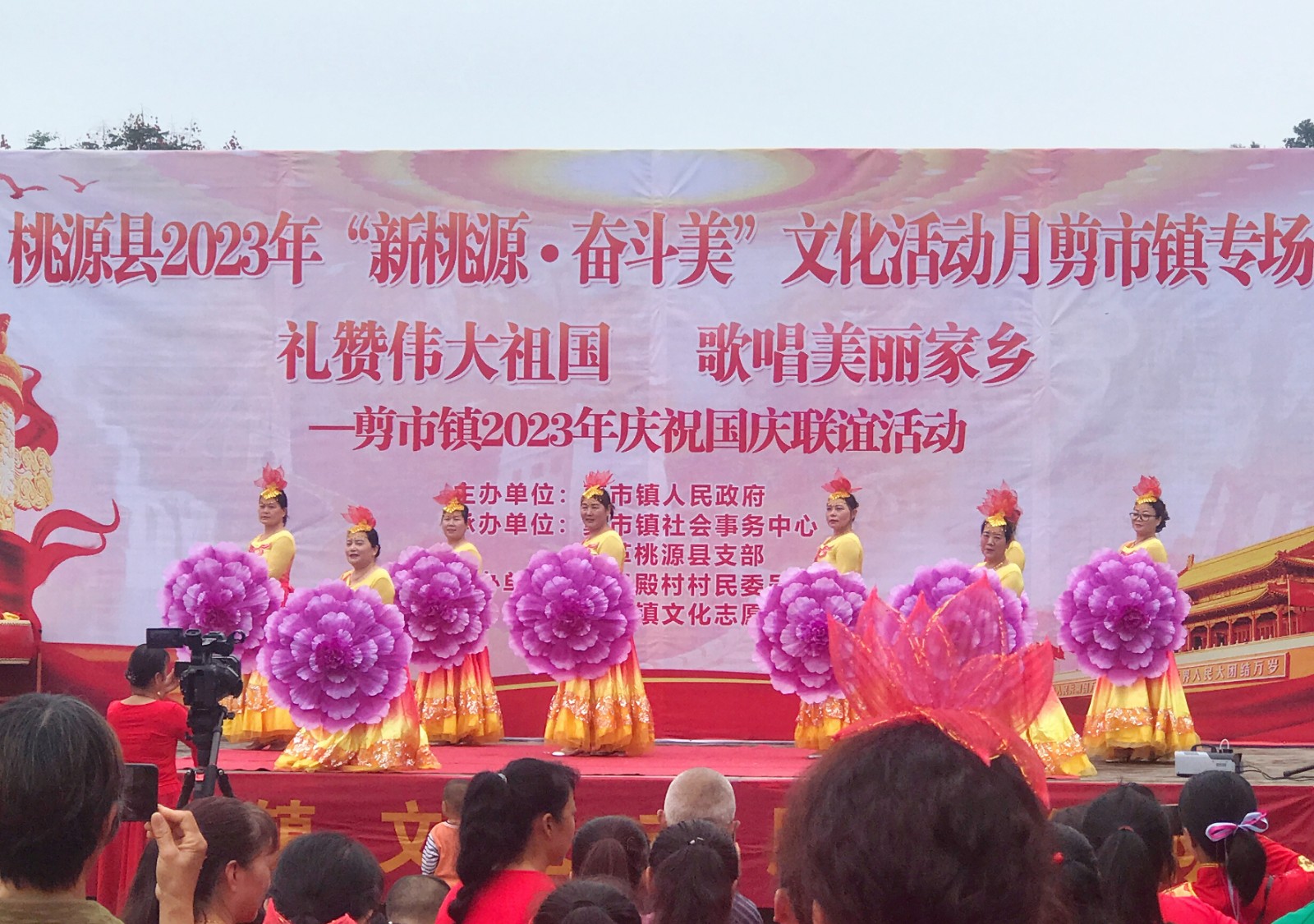 这是剪市镇为弘扬传统文化,加强辖区居民们的互动交流,由镇社会事务中心、镇妇联、新时代文明实践所、剪市镇狮子殿村村民委员会联合组织的国庆文艺汇演。