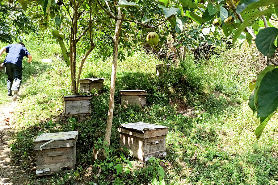 入秋了,湖南省常德市桃源县理公港镇的山坡上,传来阵阵五倍子花的清香。细看枝头,勤劳的蜜蜂们正在花中采蜜,热闹非凡。理公港镇杨公桥村的中蜂养殖基地,人迹罕至,无农业、生活、工业污染,植被茂密,野生五倍子树更是漫山遍野超千亩,为养蜂人提供了大量优质的蜜源。