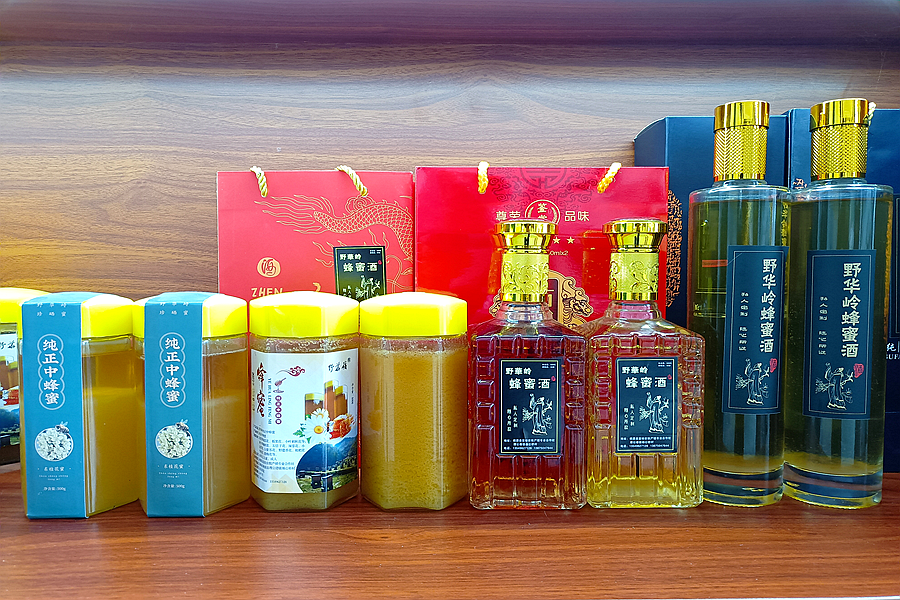 桃源县富裕农牧产销专业合作社的养蜂人介绍道:五倍子花蜜色泽金黄,浓稠清亮,蜜香芬芳,甜美味佳,兼具食、药价值,属同行业翘楚,深受嗜蜜消费者喜爱。除了销售各种蜂蜜,该合作社还创新推出了蜂蜜酒,将天然蜂蜜与农家自酿米酒相结合,口感清甜,营养价值极高。目前,桃源县富裕农牧产销专业合作社已注册商标“野华岭”,积极打造自主品牌,探索线上及线下相结合的销售渠道,产品在各大电商平台均有销售。