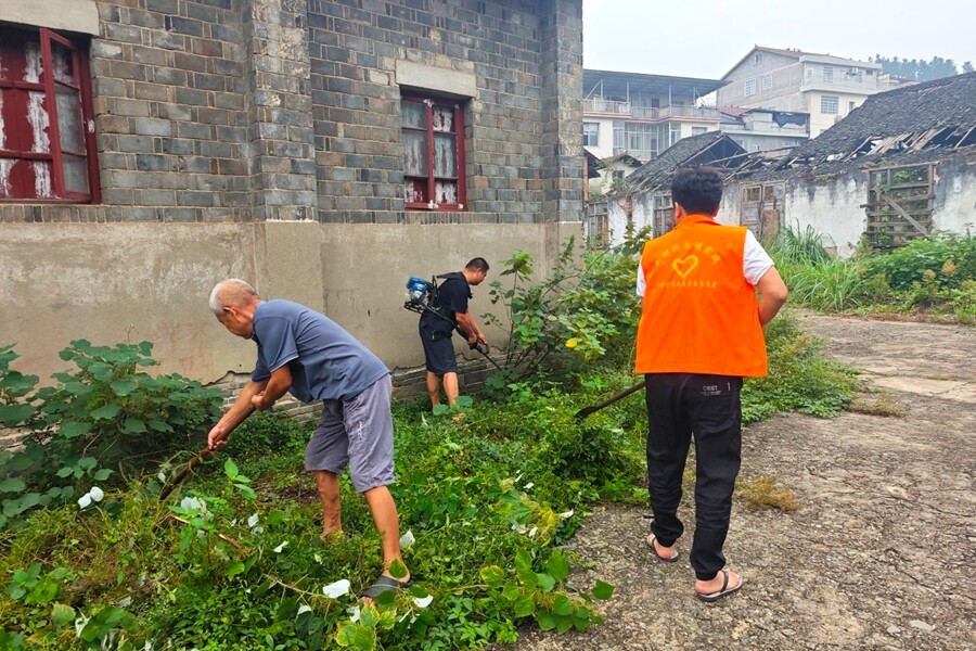 党员志愿者清理老茶厂内杂草