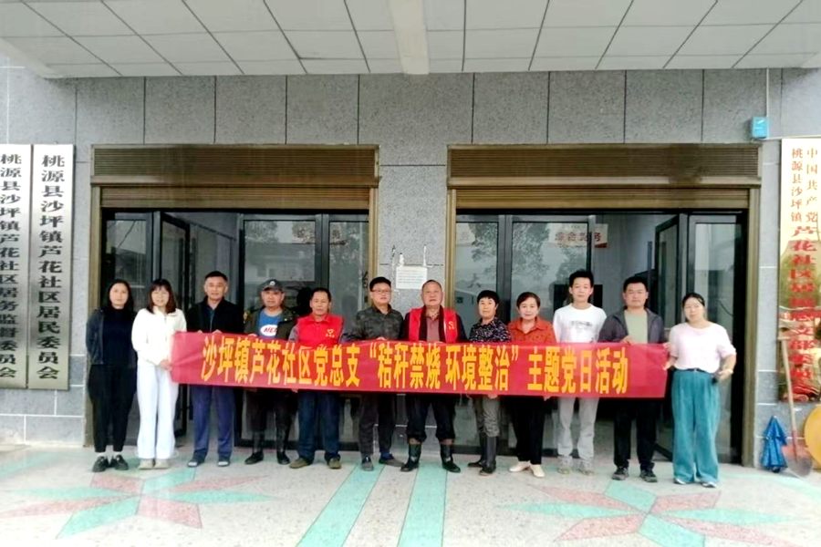 近日,沙坪镇芦花社区党总支积极发挥基层党组织战斗堡垒与党员先锋模范作用,组织社区党员集中开展秸秆禁烧宣传巡查和卫生死角清理专项行动,以实干守护绿水青山,用担当擦亮“秀美桃源”底色,提升社区人居品质。