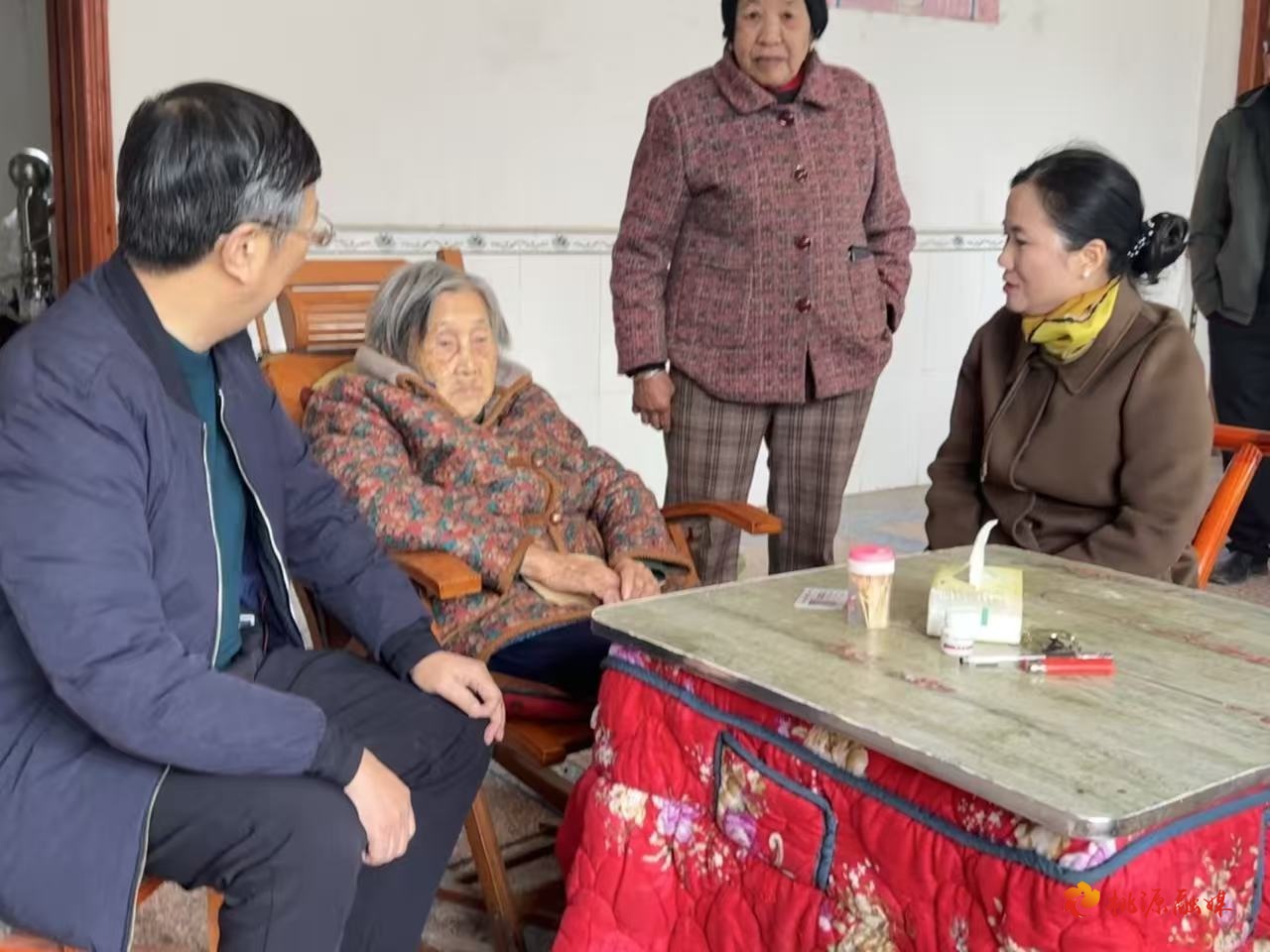 在热市镇,李廷芬亲切看望106岁高龄的王小妹老人,详细了解老人的日常起居和身体状况。看到老人精神矍铄、思路清晰,家庭和睦,李廷芬感到由衷欣慰。她说,家有一老,如有一宝,要继续传承好家风,悉心照顾好老人的生活,让老人安享晚年。