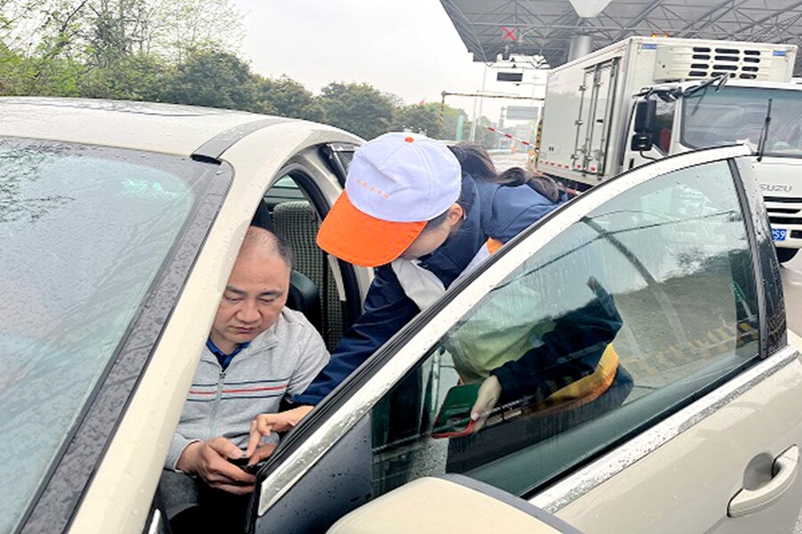这份无处不在的默契,在“10分钟响应机制”的实战中展现出惊人的力量。车主周先生曾焦急地发现ETC突然“失灵”。岗亭指令刚落,行政人员已一路小跑赶到。她利落地蹲在车头前,处理旧胶时,指尖小心翼翼用指甲轻抠,那份轻柔只为守护车漆的光泽;重新粘贴时,她聚精会神,比对着前挡风玻璃的刻度线反复调整了三次角度,只为确保设备能“正对车道识别器”,精准响应。短短两分钟,问题迎刃而解。当周先生还在手忙脚乱翻找客服电话时,抬起头已是满面惊喜:“比我划手机屏幕的速度还快!”他清亮的笑声瞬间穿透了嘈杂的车流喧嚣。