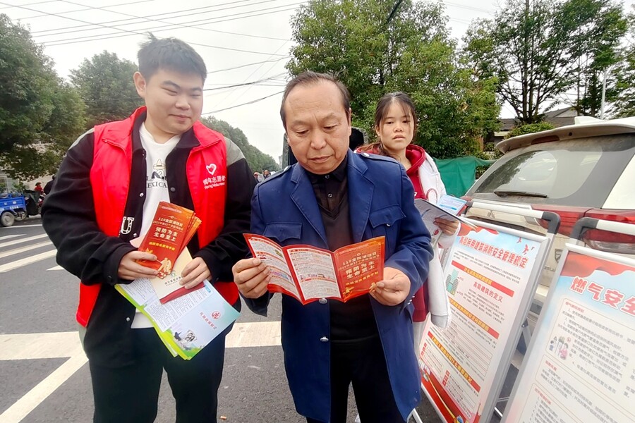活动现场,消防宣传板块十余块主题展板成了“安全课堂”内容涵盖“冬季防火安全知识”“燃气安全使用规范”“电动车火灾预防”“飞线充电隐患”等多个群众关切的主题。展板以图文并茂、案例警示的形式,直观展现火灾风险与逃生技能,吸引了大量过往群众驻足观看。青年志愿者身披红马甲,手持《消防安全知识手册》,用方言向村民讲解家庭火灾隐患排查、初期火灾扑救等知识。