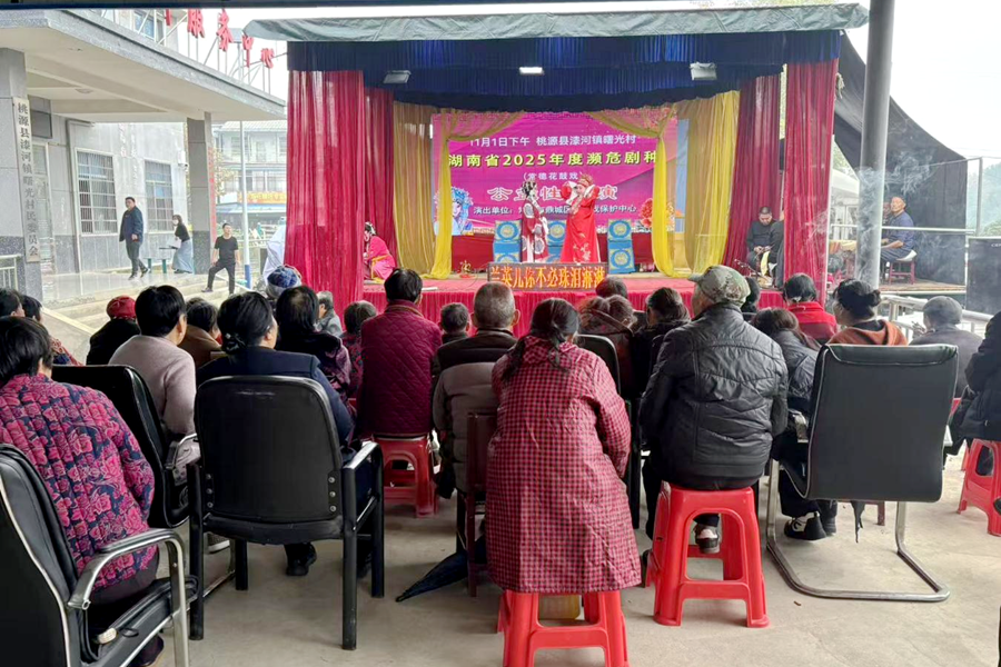 近日,漆河镇曙光村文化广场锣鼓铿锵、人声鼎沸,常德市武陵区花鼓戏保护中心“送戏下乡”公益展演活动在此举行,一台经典花鼓戏《巡按斩子》让当地村民过足了戏瘾,在家门口尽享非物质文化遗产盛宴。