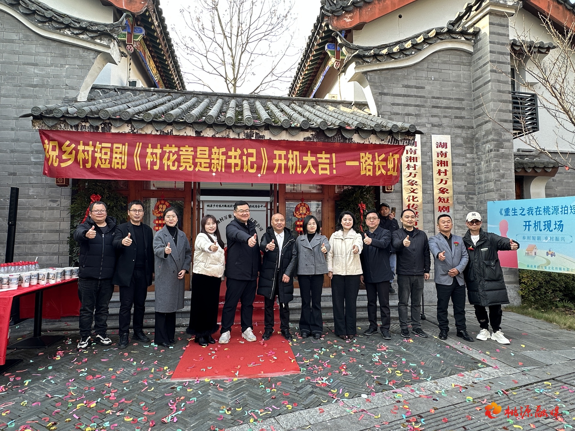 12月28日上午,湖南湘村万象文化传媒有限公司在桃花源古镇正式开业,是桃源县成立的首家微短剧公司,标志着桃源县微短剧产业迈向了政企联动、全民参与的产业深耕新阶段。县委常委、县委宣传部部长丁利民宣布开机,副县长徐超致辞,湘村万象文化传媒有限公司董事长郑兴瑜致欢迎词。