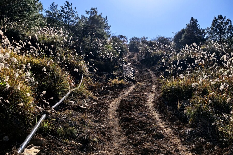 经过反复勘测与科学论证,最终选定水质好的黄皮港水库作为供水点、黄牛咀组的海拔较高的山顶平地作为蓄水池建设点,确定新建35立方蓄水池,铺设管道5600米。蓝图绘就,挑战随之而来。前往山顶的路段山高坡陡,机械设备无法进入,水泥、砂石、管道等都只能依靠最原始的方式运输,马队成了山中独特的风景线。在狭窄崎岖的山道上,马蹄踏破晨露,沉重的喘息混着赶马人的吆喝。上坡时,马匹四蹄打滑,进退维艰;村民们在旁肩扛手推,汗水浸透衣衫。一袋水泥、一根钢管,都凝结着艰辛的汗水,丈量着为民服务的初心。